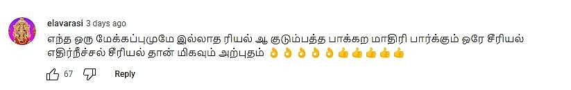 இந்நிலையில், 'எதிர்நீச்சல்' தொடர் அசலான குடும்பத்தைப் பார்ப்பது போன்று உள்ளதாக ரசிகர்கள் பலர் கருத்து தெரிவித்து வருகின்றனர். ஒரு குடும்பத்தில் எங்கு இருந்து முக்கியமான விஷயங்களைப் பேசினாலும், அது அடுப்படியில் நின்று பேசுவதைப் போல ஆகாது, என்று பலர் எதிர்நீச்சலில் வரும் சமையலறைக் காட்சிகளை சிலாகித்து வருகின்றனர்.