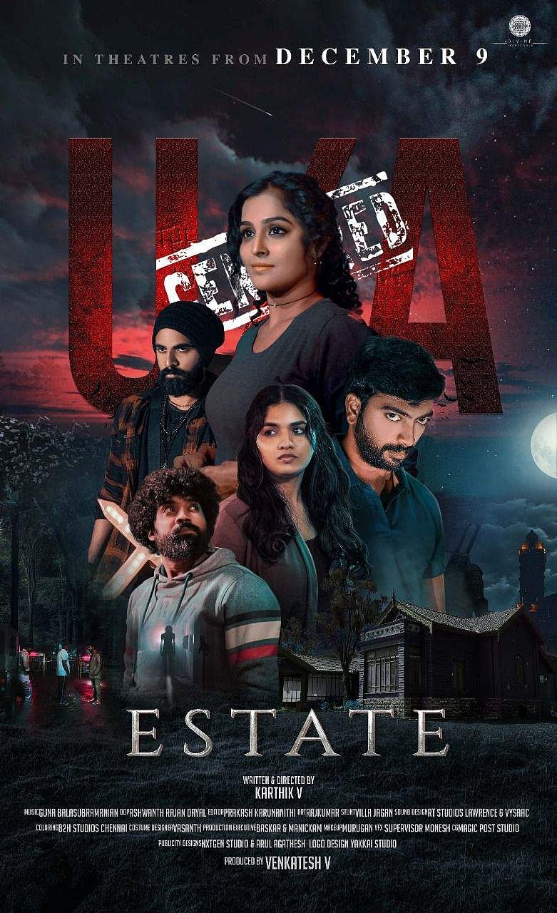 டிவைன் புரடக்ஷன்ஸ் தயாரிப்பில் வி. கார்த்திக் இயக்கத்தில் சுனைனா, ரம்யா நம்பீசன், கலையரசன், டேனியல் நடிப்பில் உருவாகியுள்ள படம் ‘எஸ்டேட்’. இந்தப் படத்தில் குணா பால சுப்ரமணியன் இசையமைக்க அஸ்வந்த் ராஜன் ஒளிப்பதிவு செய்துள்ளார்.
