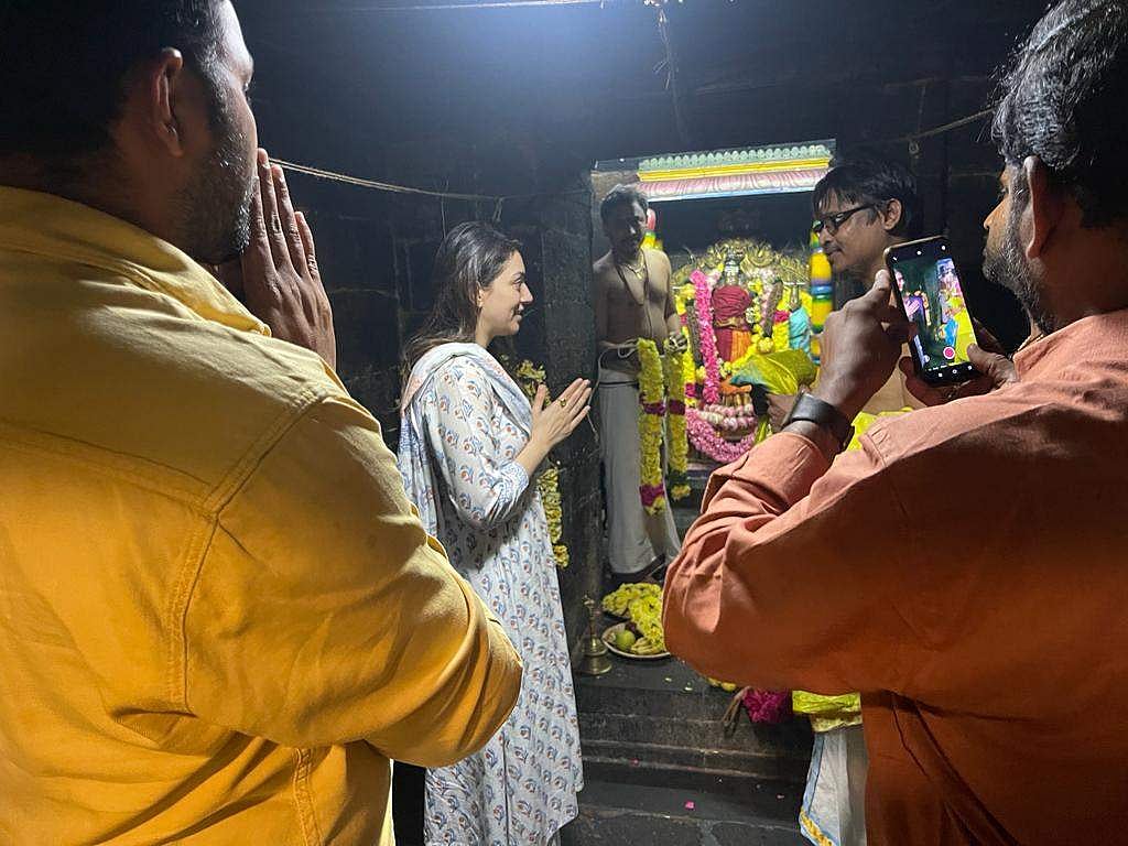 இன்று சென்னையில் உள்ள காளிகாம்பாள் கோயிலில் தரிசனத்திற்கு ஹன்சிகா, இயக்குநர் கண்ணன் மற்றும் படக்குழுவினர் வந்திருந்தனர்.