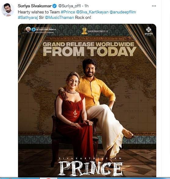 சர்தார் மற்றும் பிரின்ஸ் படக்குழுவினர்களுக்கு நடிகர் சூர்யா வாழ்த்து தெரிவித்துள்ளார்.