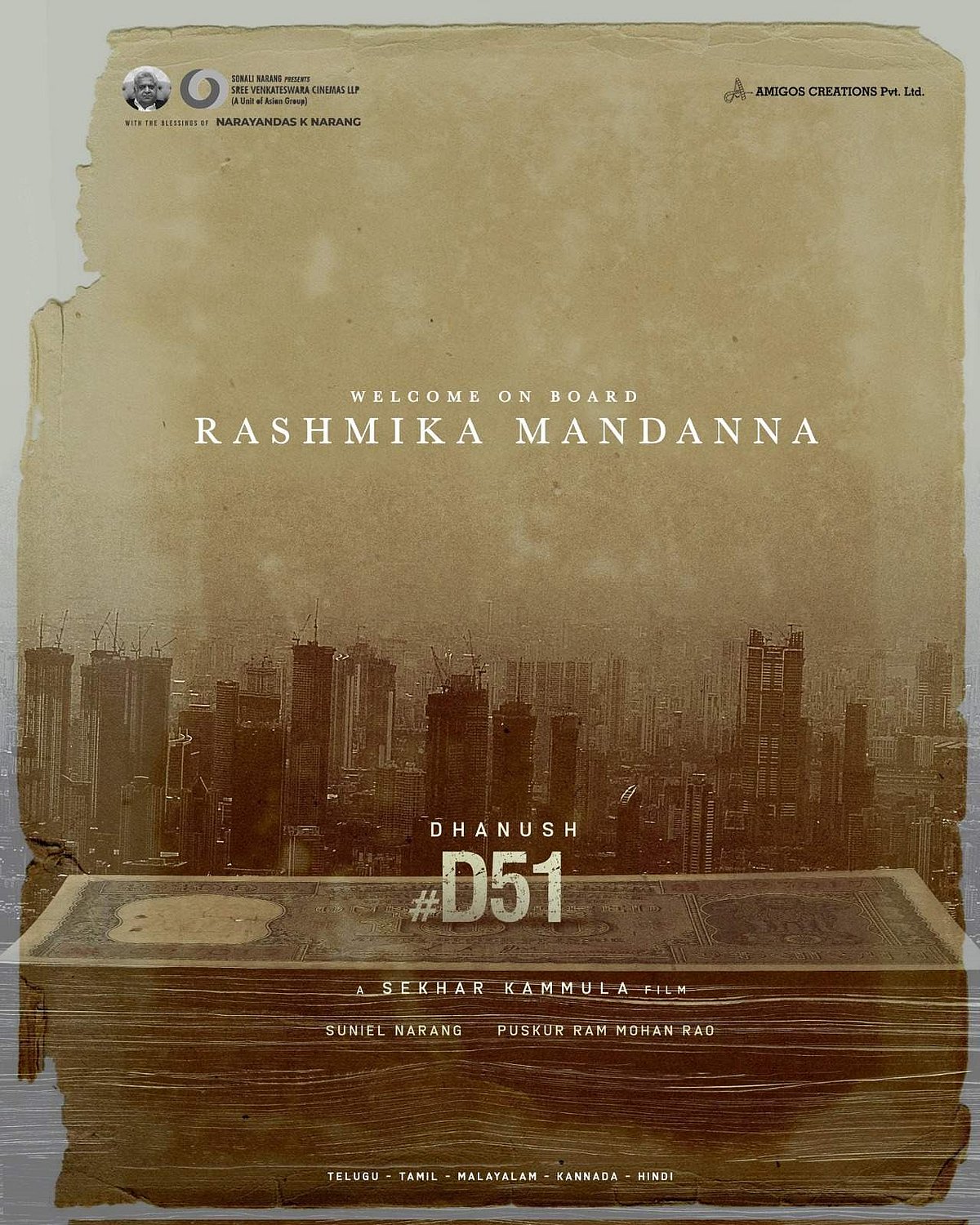 மேலும், நாகர்ஜுனா, சாய் பல்லவி, ஆகியோர் நடிக்க உள்ளதாகவும், ஏ.ஆர்.ரஹ்மான் இசையமைக்கவுள்ளதாகவும் தகவல்கள் வெளியாகியுள்ளன.