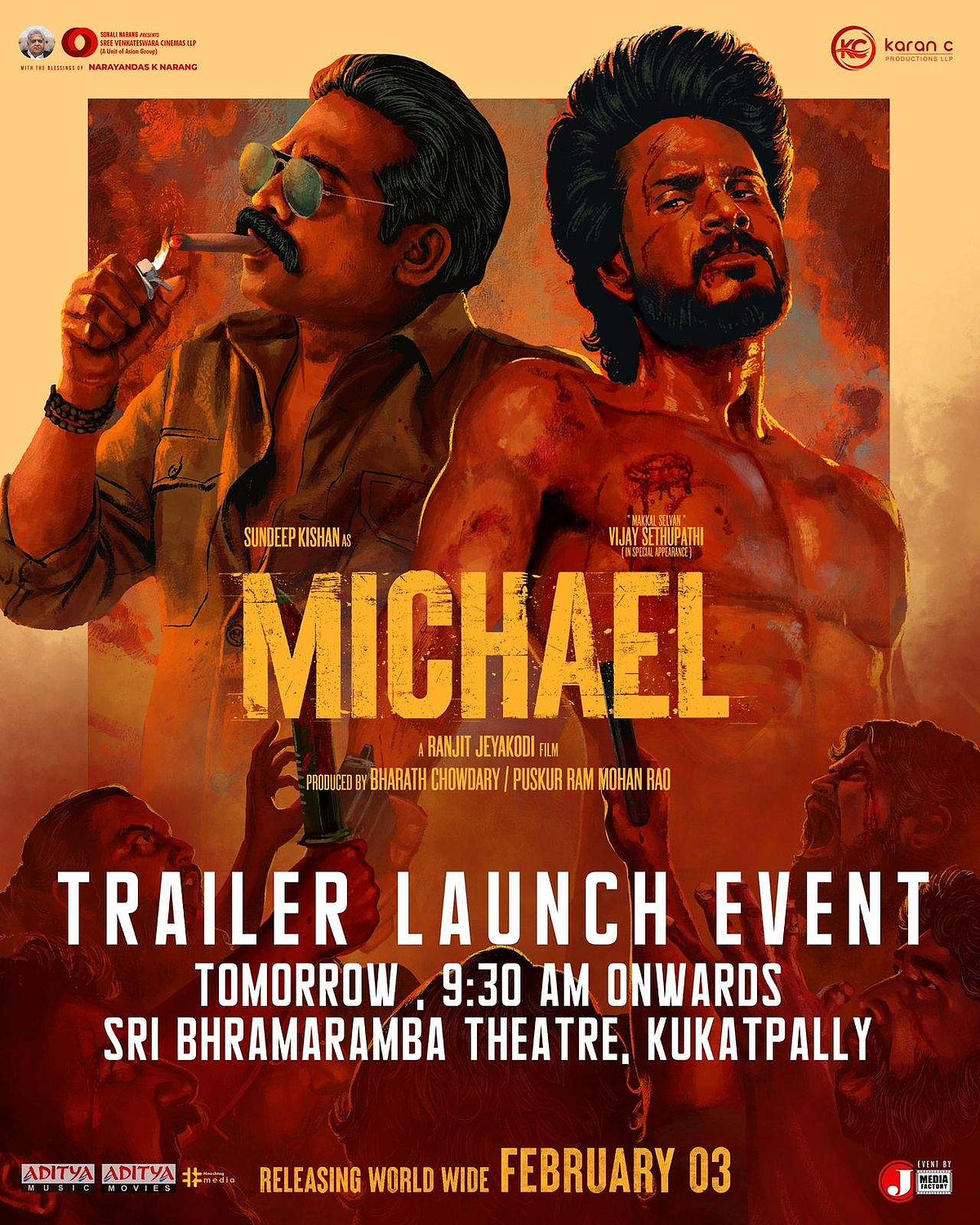 விஜய் சேதுபதி, சந்தீப் கிஷன் நடித்துள்ள ‘மைக்கேல்’ படத்தின் டிரைலரை பிரபல தெலுங்கு நடிகர் வெளியிட உள்ளார்.
