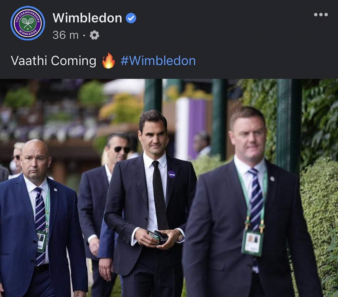 2022இல் ரோஜர் ஃபெடரர் நடந்து வரும் புகைப்படத்தினை பதிவிட்டு விம்பிள்டன் தனது அதிகாரபூரவ பேஸ்புக் கணக்கில் “வாத்தி கம்மிங்” என பதிவிட்டு இருந்தது. பின்னர் சமீபத்தில் ரோஜர் ஃபெடரர் புகைப்படத்திற்கு “தலைவா” என பதிவிட்டிருந்தது.