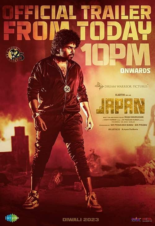 ஜப்பான் படத்தின் டிரைலர் இன்று(அக்.28) இரவு 10 மணிக்கு வெளியாகும் என படக்குழு தரப்பில் போஸ்டர் வெளியிட்டு தெரிவிக்கப்பட்டுள்ளது.