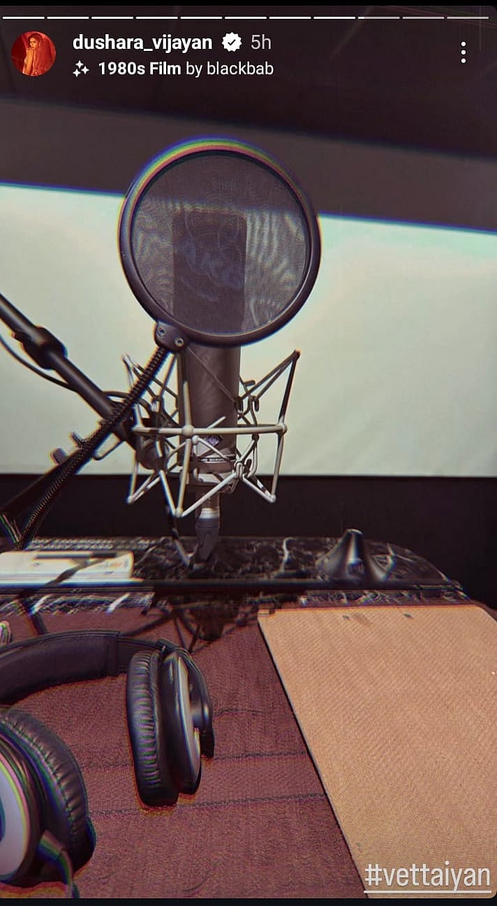 இந்நிலையில் நடிகை துஷாரா வேட்டையன் படத்தின் டப்பிங் பணிகளை தொடங்கியுள்ளதாக தனது இன்ஸ்டாகிராம் ஸ்டோரியில் புகைப்படங்களை வெளியிட்டுள்ளார்.