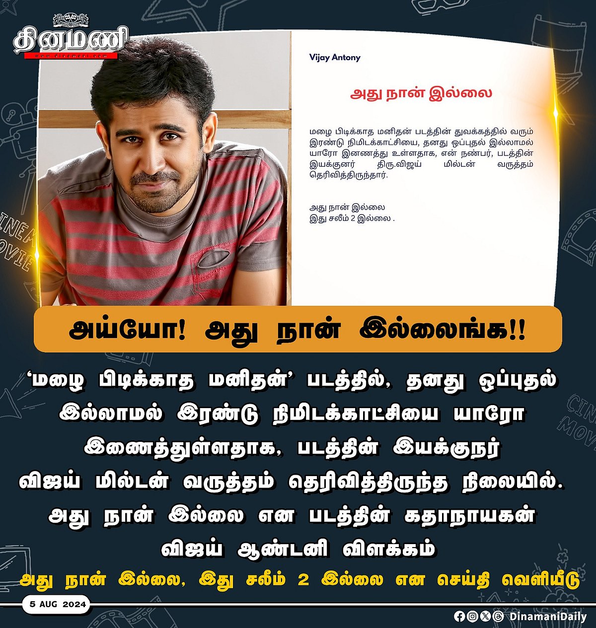 இந்த நிலையில்,படத்தின் முதல்நாள் பத்திரிகையாளர் காட்சியைப் பார்த்த விஜய் மில்டன், “மழை பிடிக்காத மனிதனில் நாயகன் யார், எங்கிருந்து வந்திருக்கிறார் என்கிற கேள்விகளை வைத்தே இப்படத்தை எடுத்தேன். கேள்விகளாலே இக்கதையை உருவாக்கியிருந்தேன். இப்போது, படத்தைப் பார்க்கும்போது நாயகன் யார் என்கிற ஒரு நிமிட காட்சியை படத்தின் ஆரம்பத்தில் யாரோ சேர்த்திருக்கிறார்கள்.
