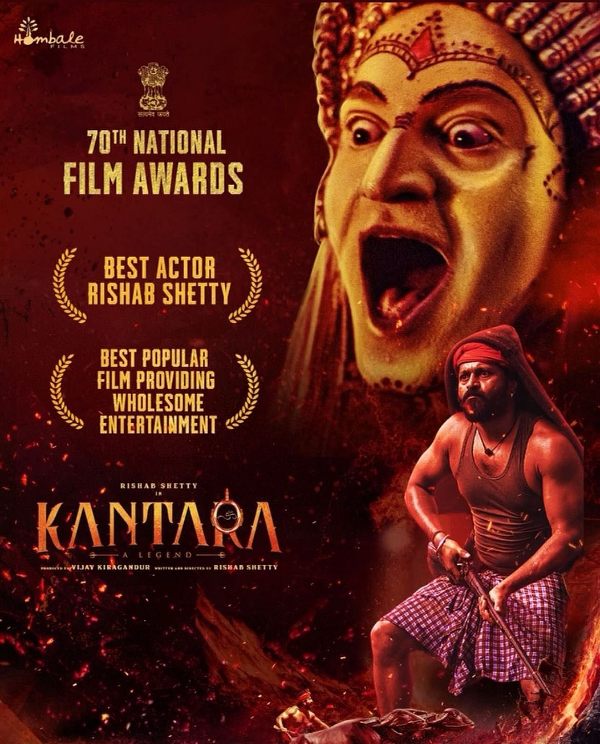சிறந்த நடிகருக்கான தேசிய விருதை ரிஷப் ஷெட்டிக்கு கிடைத்தது குறிப்பிடத்தக்கது. சிறந்த பொழுதுபோக்கு திரைப்படத்துக்கும் விருது கிடைத்தது.