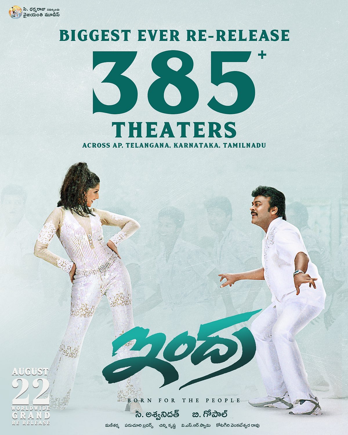 தெலுங்கு சினிமாவில் முக்கியமான நடிகளுல் ஒருவர் சிரஞ்சீவி. 2002இல் பி.கோபாலன் இயக்கத்தில் வெளியான இந்திர (தமிழில் இந்திரன்) திரைப்படம் தற்போது மறுவெளியீடாகியுள்ளது.