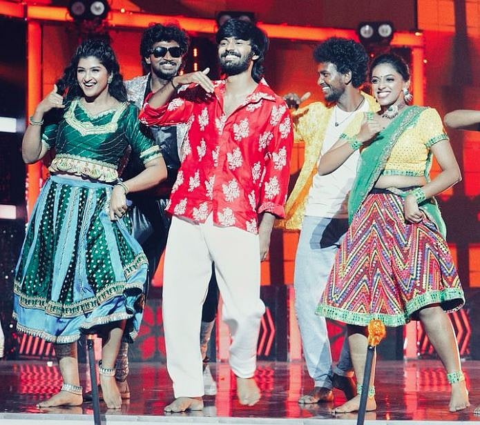 நடன நிகழ்ச்சியில் நடுவர்களுடன் நடனமாடும் குரு