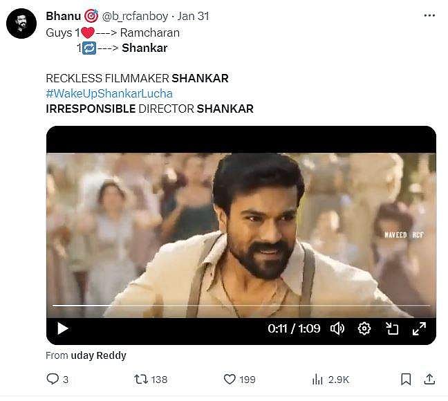 இயக்குநர் ஷங்கரை நடிகர் ராம் சரணின் ரசிகர்கள் இணையத்தில் விமர்சித்து வருகிறார்கள்.