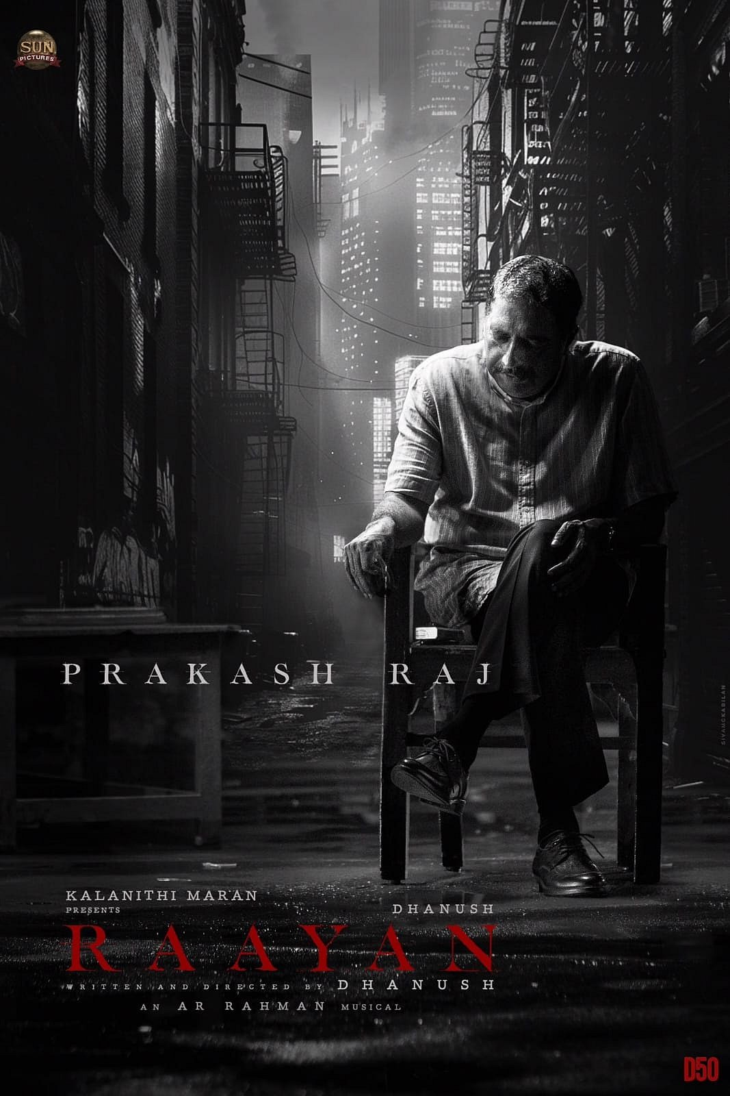தனுஷ் இயக்கி நடிக்கும் ராயன் படத்தின் பிரகாஷ் ராஜின் முதல் பார்வை போஸ்டர் வெளியாகியுள்ளது.