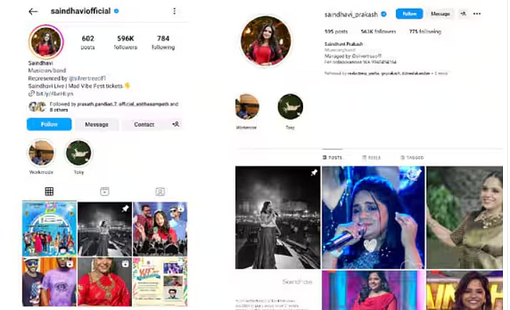 இந்த நிலையில், இன்ஸ்டாகிராமில் சைந்தவி பிரகாஷ் என்கிற பெயரில் கணக்கு வைத்திருந்த சைந்தவி தற்போது பிரகாஷ் என்பதை நீக்கியுள்ளார்.