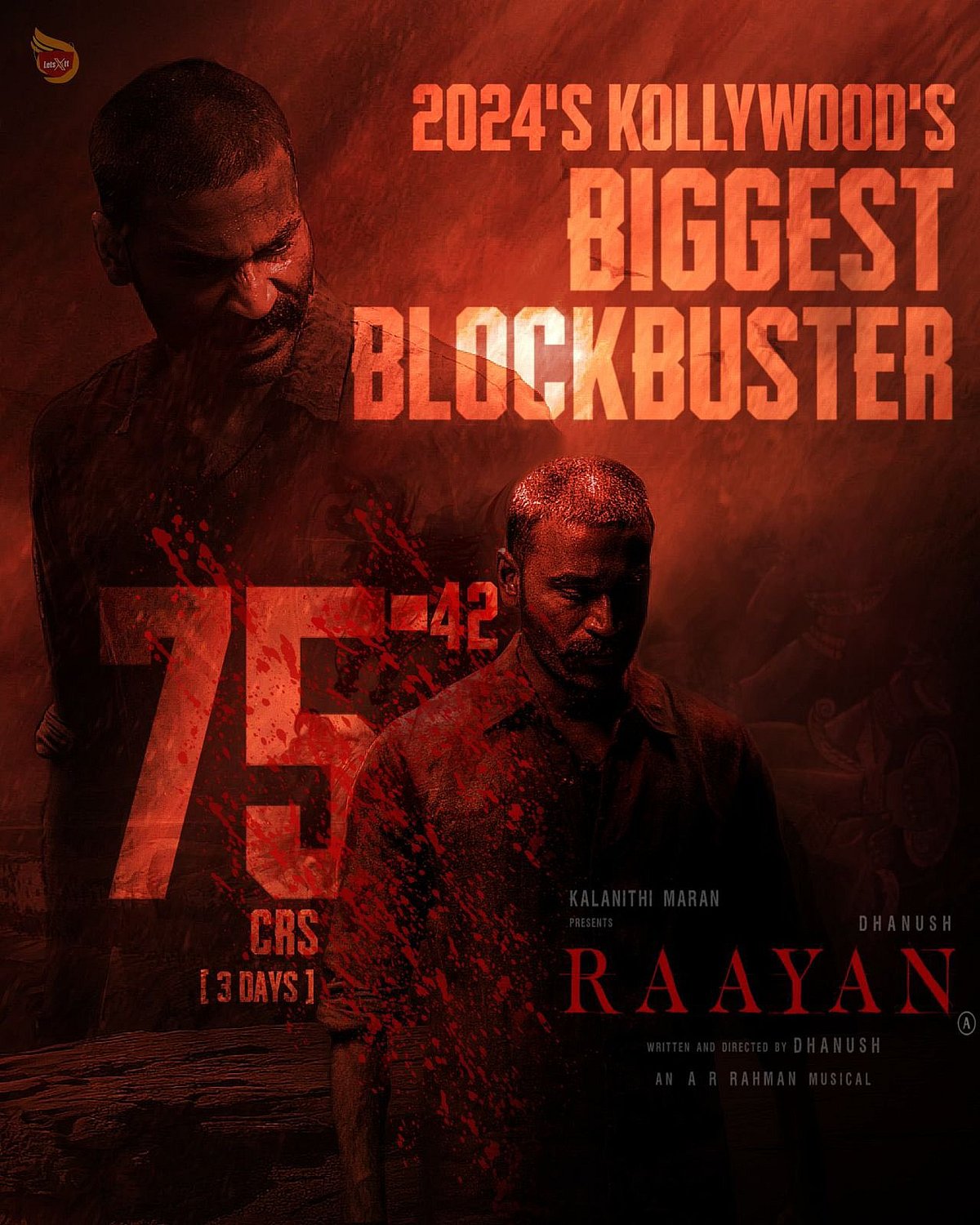 இந்த நிலையில், ராயன் திரைப்படம் முதல் மூன்று நாள்களில் உலகளவில் ரூ.75.2 கோடியை வசூலித்துள்ளதாக தனுஷ் தரப்பிலிருந்து அதிகாரப்பூர்வமாக அறிவித்துள்ளனர். இந்தப் படத்தை பிளாக்பஸ்டர் படமாக்கியதற்காக நடிகர் தனுஷ் ரசிகர்களுக்கு நன்றி தெரிவித்துள்ளார்.