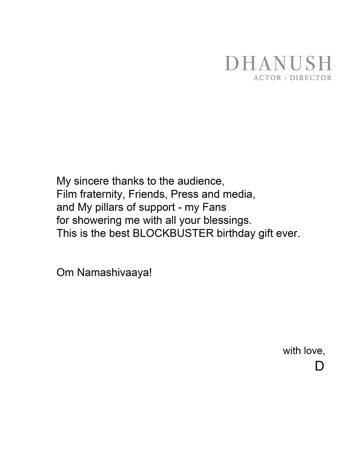 தனுஷ் வெளியிட்ட அறிக்கை.