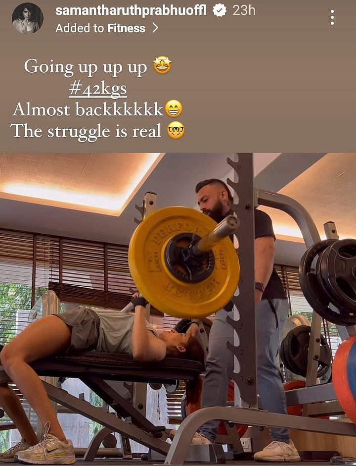 இந்த நிலையில், தனது இன்ஸ்டாகிராம் பக்கத்தில் ஸ்டோரியில் விடியோ ஒன்றை வெளியிட்டுள்ளார். அதில், 42 கிலோ எடையை தூக்குகிறார். போராட்டம் உண்மையானது எனக் குறிப்பிட்டுள்ளார். மீண்டும் பழையை உடல் நிலைக்கு திரும்பியுள்ளதாகவும் குறிப்பிட்டுள்ளார்.