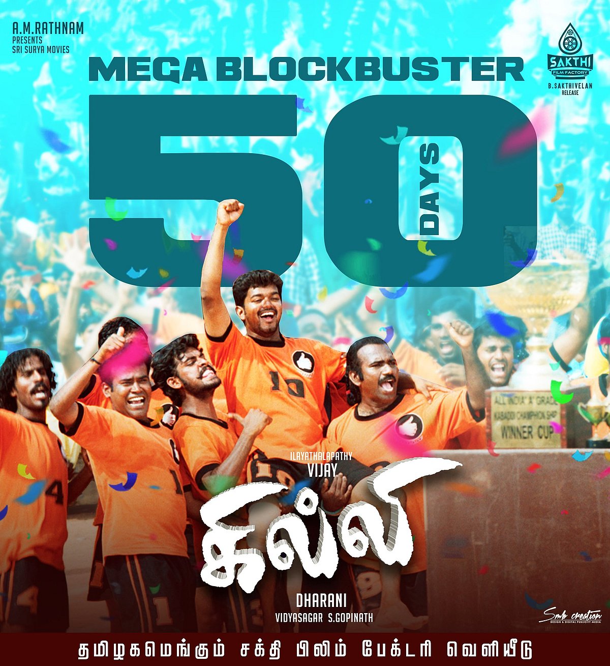 தற்போது கமலின் இந்தியன் படமும் இந்தச் சாதனையை முறியடிக்க திணறுகிறது குறிப்பிடத்தக்கது. கில்லி திரைப்படம் இன்றோடு 50ஆவது நாளைக் கடந்து ஓடிக்கொண்டிருப்பது குறிப்பிடத்தக்கது.