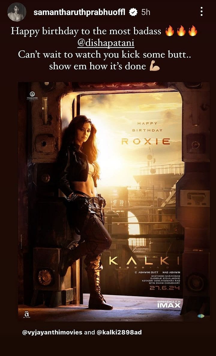 நடிகை சமந்தா இந்தப் போஸ்டரைப் பகிர்ந்து, “பிறந்தநாள் வாழ்த்துகள் மிகவும் கவர்ச்சிகரமான திஷா பதானி. உங்களது சண்டைக் காட்சிகளைப் பார்க்க ஆவலுடன் இருக்கிறேன். இது எப்படி முடிந்தது என தயவுசெய்து விளக்குங்கள்” என வியந்து பாராட்டியுள்ளார்.