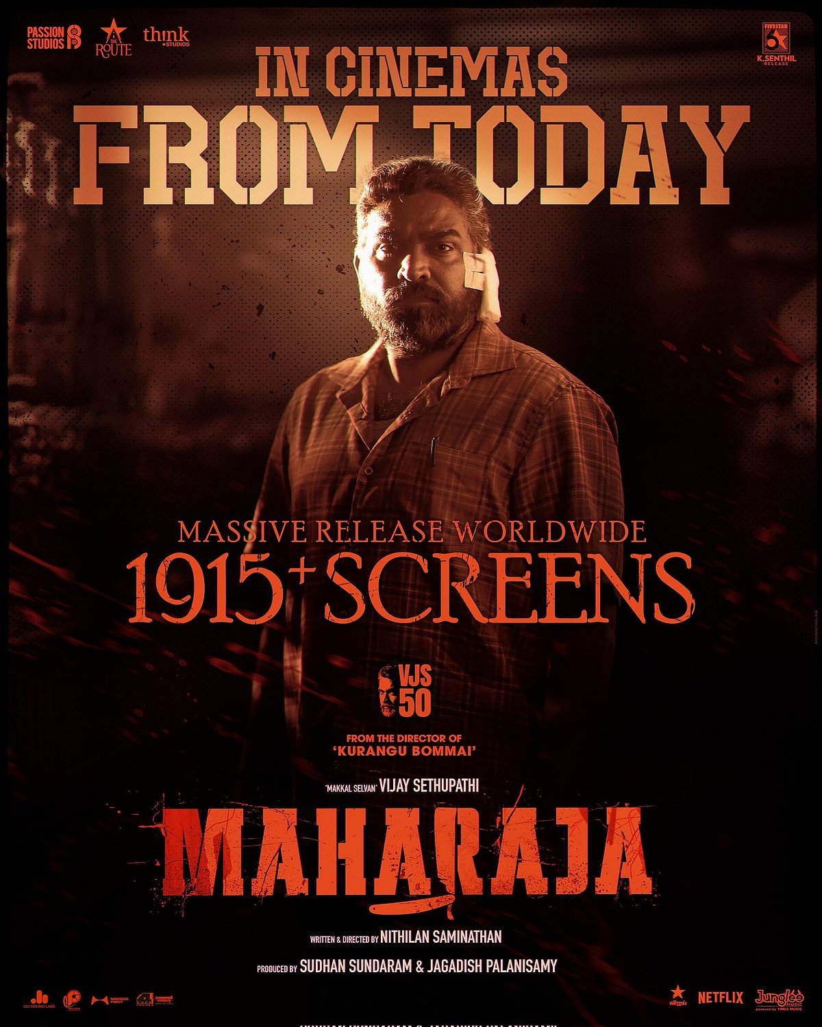 இந்நிலையில், மகாராஜா திரைப்படம் இன்று (ஜூன் 14) உலகம் முழுவதும் 1915க்கும் அதிகமான திரைகளில் வெளியாகியுள்ளது.