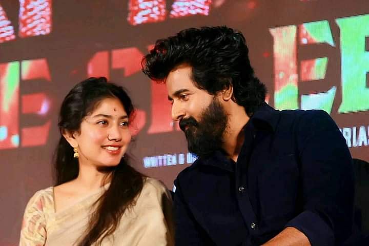அமரன் வெற்றிக் கொண்டாட்ட நிகழ்வில் சிவகார்த்திகேயன், சாய் பல்லவி.