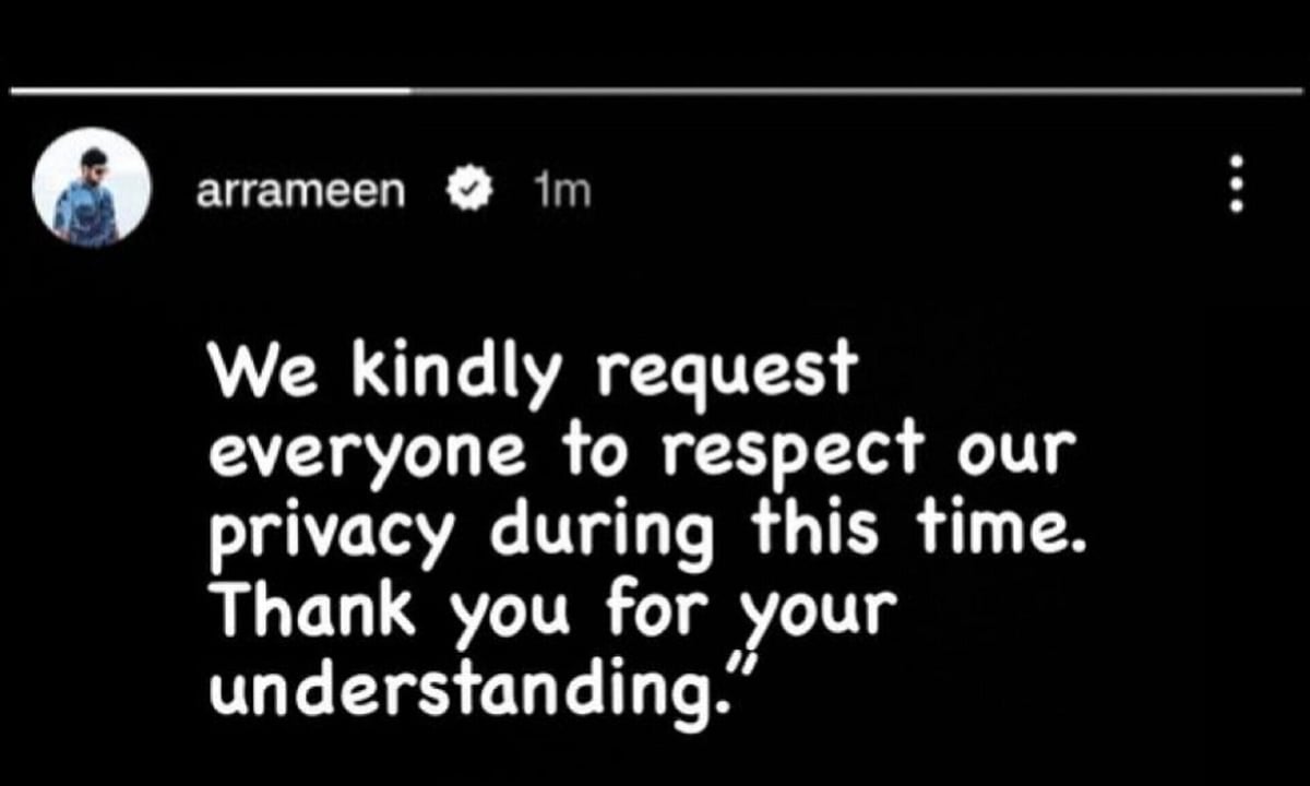 மேலும், அவர்களது மகன் ஏ.ஆர். அமீன், தனது இன்ஸ்டா பக்கத்தில் ``இந்த நேரத்தில் எங்கள் தனியுரிமையை மதிக்குமாறு அனைவரையும் கேட்டுக்கொள்கிறோம். உங்கள் புரிதலுக்கு நன்றி’’ என்று பதிவிட்டுள்ளார்.