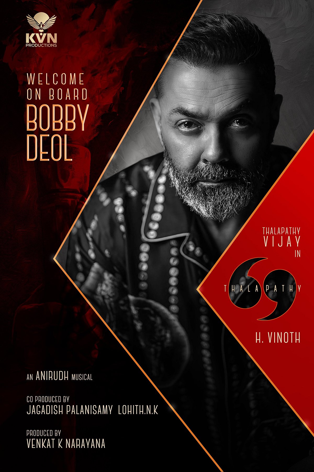 இந்த நிலையில், ஹெச். வினோத் - விஜய் கூட்டணியில் உருவாகும் திரைப்படத்தில் நடிக்கவுள்ள நடிகர்கள் குறித்த அறிவிப்பில், முதல் நடிகராக பாபி தியோல் இணைந்துள்ளதை தயாரிப்பு நிறுவனம் அதிகாரப்பூர்வமாக அறிவித்துள்ளது.