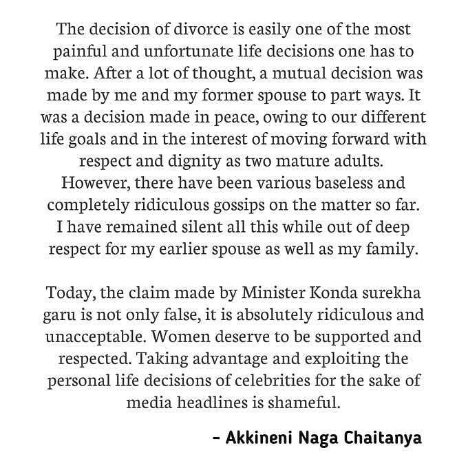 நாக சைதன்யாவின் அறிக்கை