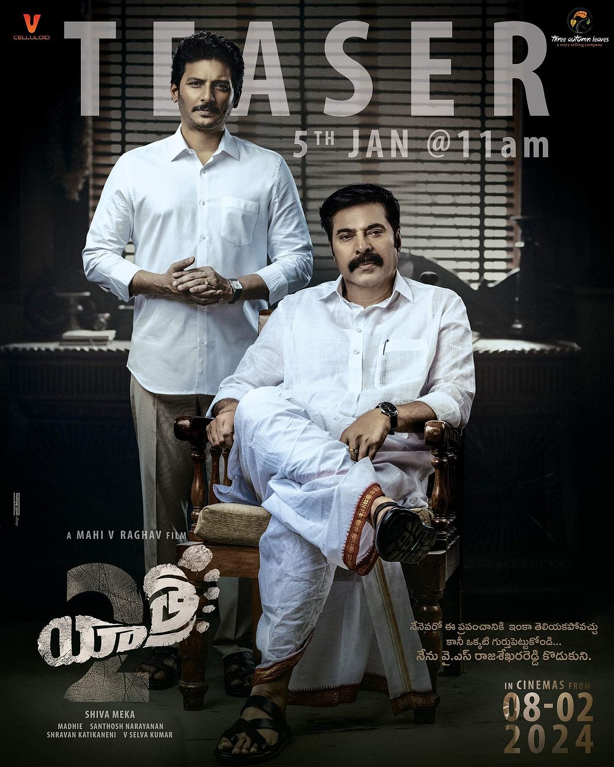 நடிகர் மம்மூட்டி, ஜீவா இணைந்து நடிக்கும் ‘யாத்ரா 2’ படத்தின் டீசர் வெளியீட்டுத் தேதி அறிவிக்கப்பட்டுள்ளது.