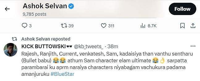 இந்நிலையில், படம் இன்று (ஜன. 25) வெளியாகி நல்ல வரவேற்பு கிடைத்து வருகின்றன. நடிகர் அசோக் செல்வன் தனது ட்விட்டர் பக்கத்தில் ரசிகர்களின் பதிவினை ரீபோஸ்ட் செய்து வருகிறார்.