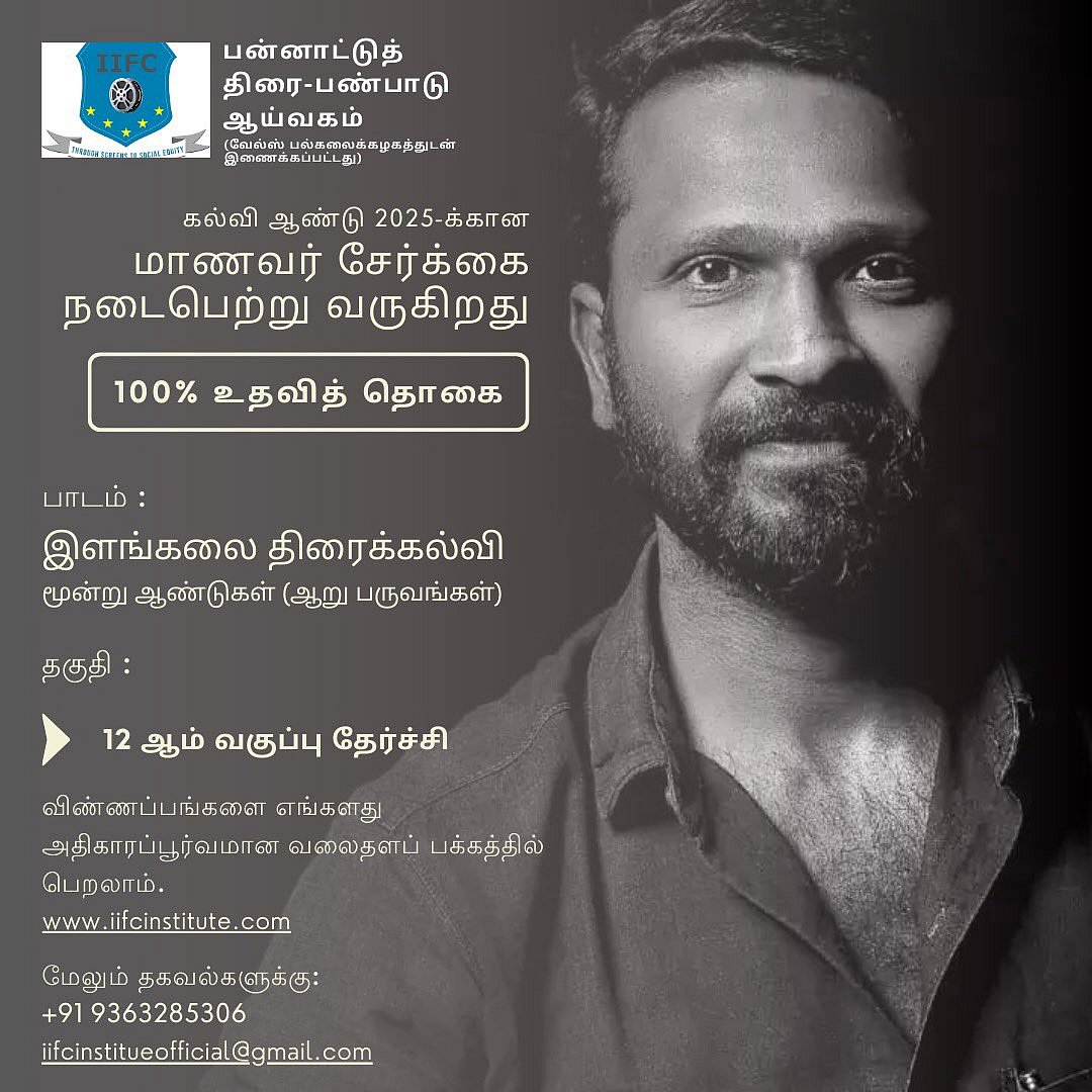 இயக்குநராகும் கனவுகளோடுவரும் வாய்ப்புகள் கிடைக்கப் பெறாத எளிய மாணவர்களுக்கு ஓர் அறிய வாய்ப்பாக 100 சதவிதிதம் உதவித் தொகையுடன் திரைக் கல்வியில் இளங்கலை படிக்க வெற்றி மாறனின் பன்னாட்டுத் திரைப் பண்பாடு அறிவித்துள்ளது.