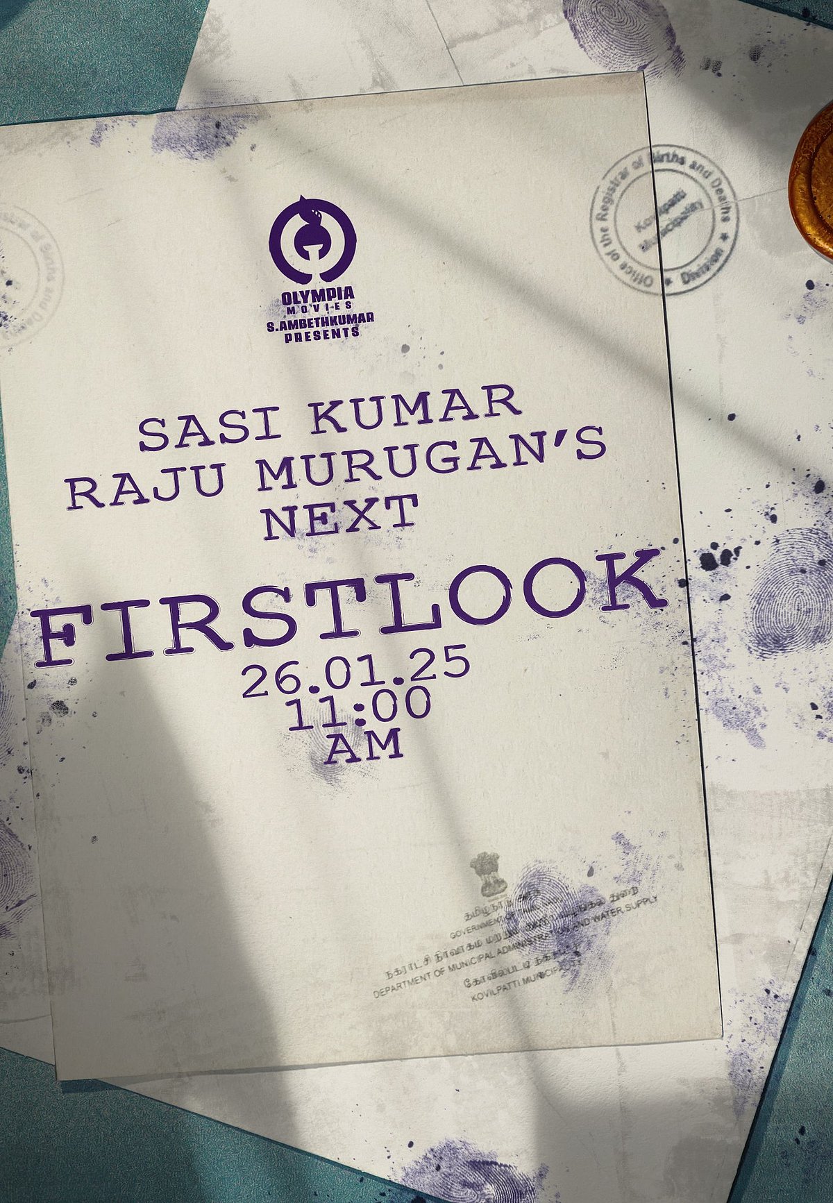 இயக்குநர் ராஜு முருகன் - சசிகுமார் படத்தின் முதல் தோற்றப் போஸ்டர் அறிவிப்பு வெளியாகியுள்ளது.