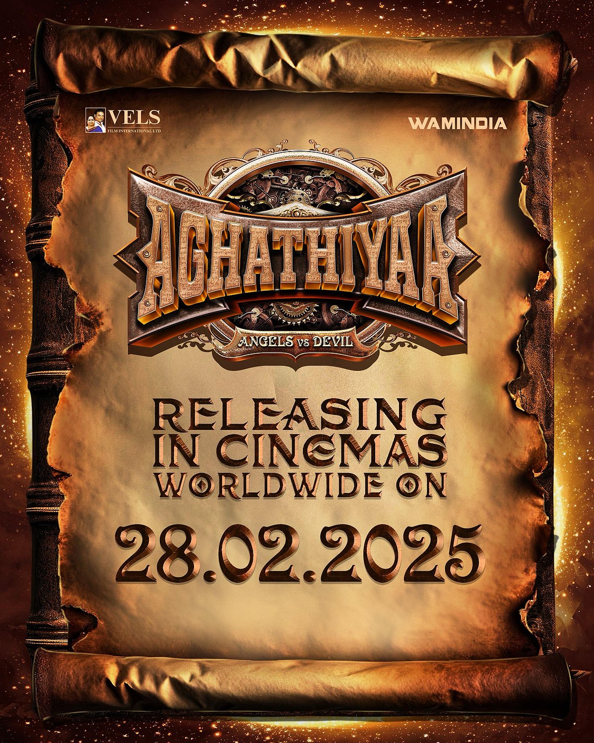 நடிகர்கள் ஜீவா, அர்ஜுன் நடிப்பில் உருவாகும் அகத்தியா திரைப்படத்தின் வெளியீட்டுத் தேதி அறிவிக்கப்பட்டுள்ளது.