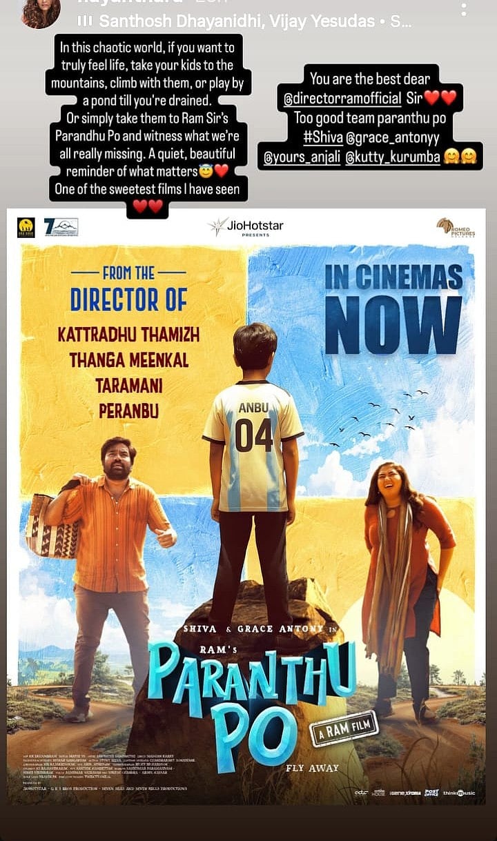 நடிகர்கள் சிவா, கிரேஸ் ஆண்டனி, அஞ்சலி, மிதுல் ரியன் நடிப்பில் வெளியான ‘பறந்து போ’ திரைப்படம் குழந்தை வளர்ப்பு மற்றும் பெற்றோர்கள் - குழந்தைகளுக்கு இடையேயான இடைவெளிகளைக் குறித்தும் பேசியிருந்தது.