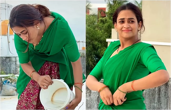 அந்தவகையில் சமீபத்தில் தெலுங்குப் பெண் எப்படி இருப்பார் என்பதை தத்ரூபமாக நடித்துக் காட்டியுள்ளார். வீட்டில் இருக்கும் சராசரி தெலுங்குப் பெண்களைப் போன்று பாவாடை தாவணி அணிந்து, அவர்கள் செய்யும் செய்கைகளை விடியோவில் காவ்யா பதிவு செய்துள்ளார்.