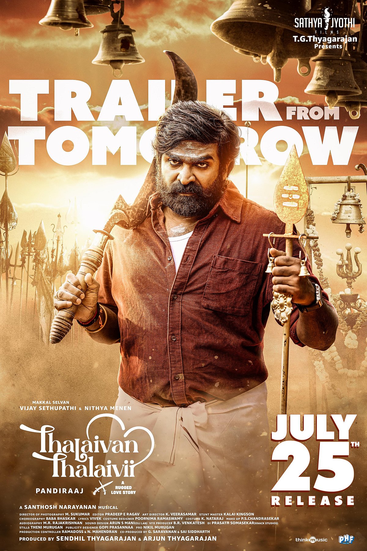 இந்த நிலையில், தலைவன் தலைவி படத்தின் டிரைலர் நாளை(ஜூலை 17) வெளியாகும் என்று அதிகாரப்பூர்வமாக அறிவிக்கப்பட்டுள்ளது.