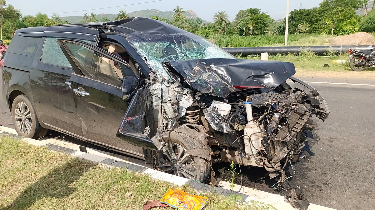 தருமபுரி மாவட்டம் பாலக்கோடு அருகே பாறையூர் அடுத்த கொம்பநாயக்கணஹள்ளி தேசிய அதிவிரைவு நெடுஞ்சாலையில் முன்னால் சென்ற லாரி மீது இந்த கார் மோதி விபத்துக்குள்ளானது.