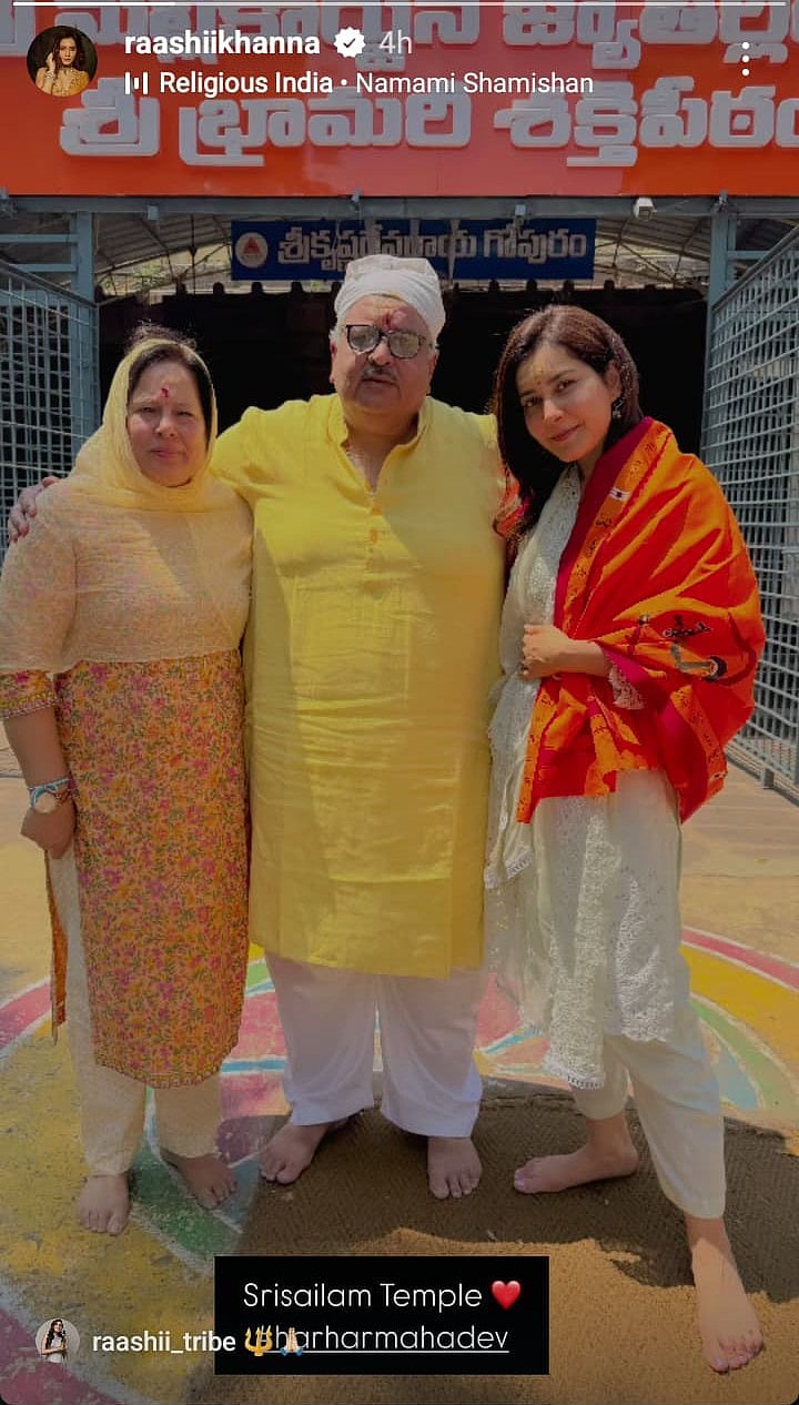 ஆந்திரத்தின் கர்னூல் மாவட்டத்தில் உள்ள ஸ்ரீசைலம் கோயிலில் நடிகை ராஷி கண்ணா குடும்பத்தினருடன் சாமி தரிசனம் செய்தார்.