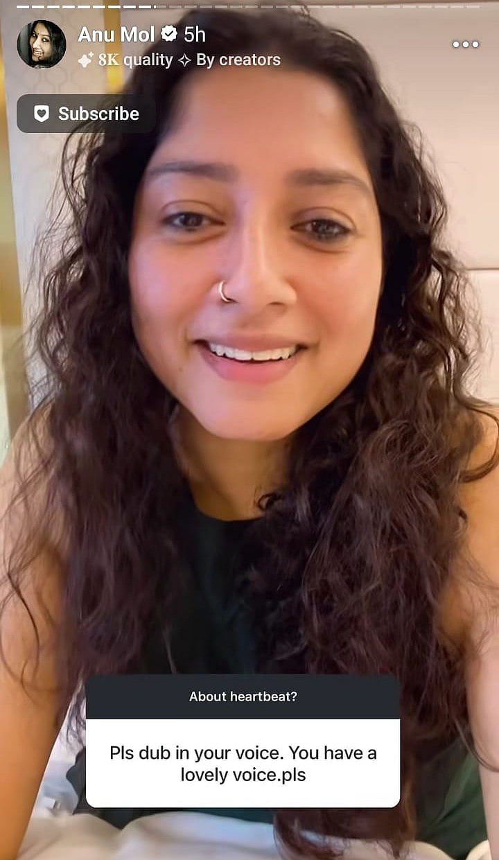 இந்நிலையில், ரசிகர் ஒருவர் அனுமோலிடம், “அழகான குரல் இருக்கிறது. பின், ஏன் தமிழில் டப்பிங் செய்யவில்லை” என இன்ஸ்டாவில் கேள்வி கேட்டிருந்தார்.