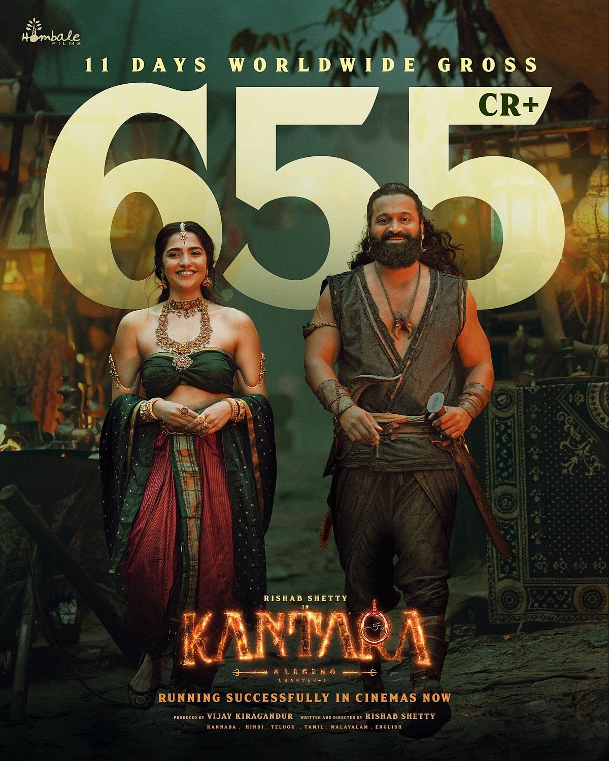 காந்தாரா சாப்டர் 1 திரைப்படத்தின் வசூல் ரூ. 650 கோடியைத் தாண்டியதாக படக்குழு அறிவித்துள்ளது.