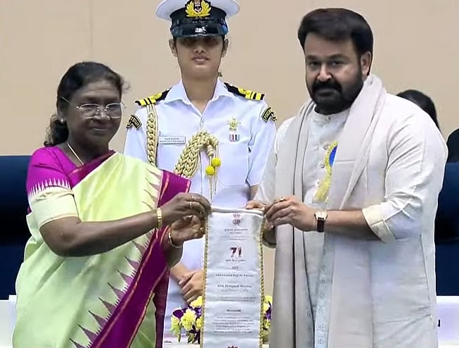 தேர்வான கலைஞர்கள் விருது பெற்று வரும் நிலையில், சினிமாவில் செய்த பணிகளைப் பாராட்டி, மலையாள நடிகர் மோகன்லாலுக்கு வாழ்நாள் சாதனைக்கான தாதா சாகேப் பால்கே விருதை குடியரசுத் தலைவர் திரெளபதி முர்மு வழங்கினார்.