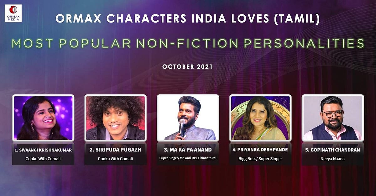 இதேபோன்று மக்களைக் கவர்ந்த சின்னத் திரை ஆளுமைகளின் பட்டியலும் வெளியாகியுள்ளது. இதில் அனைவருமே விஜய் தொலைக்காட்சியை சேர்ந்தவர்கள் தான்.
