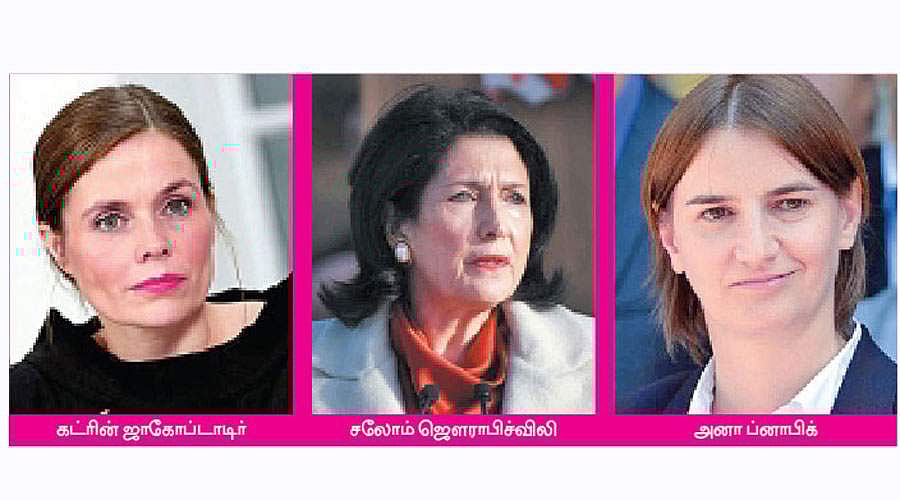 ஐரோப்பிய ஒன்றியத்தில் ஜெர்மனி (ஏஞ்சலா மெர்கல்), ஸ்லோவாகியா (ஜுஜுனா கபுடோவா), குரோஷியா (கொலிண்டா கிராபர் கிட்டாரோவிக்), எஸ்தோனியா (கெர்ஸ்டி கல்ஜுலெய்ட்), லிதுவேனியா (டேலியா க்ரைபாஸ்கைட்), ருமேனியா (வியோரிக்கா தான்சிலா), மால்டா (மேரி லூயிஸ் கொலிரோ பெர்கா), பிரிட்டன் (தெரசா மே) ஆகியோர் தலைமைப் பொறுப்பில் உள்ளனர். ஐரோப்பிய ஒன்றியத்தில் உறுப்பினராக இல்லாத பிற ஐரோப்பிய நாடுகளில் நார்வே (எர்னா சோல்பர்க்), ஐஸ்லாந்து (கட்ரின் ஜாகோப்டாடிர்), ஜார்ஜியா (சலோம் ஜெளராபிச்விலி), செர்பியா (அனா ப்னாபிக்) ஆகிய நான்கு நாடுகளில் பெண்கள் தலைமைப் பொறுப்பில் உள்ளனர். அவர்களைப் பற்றி சுருக்கமாகக் காண்போம்:
