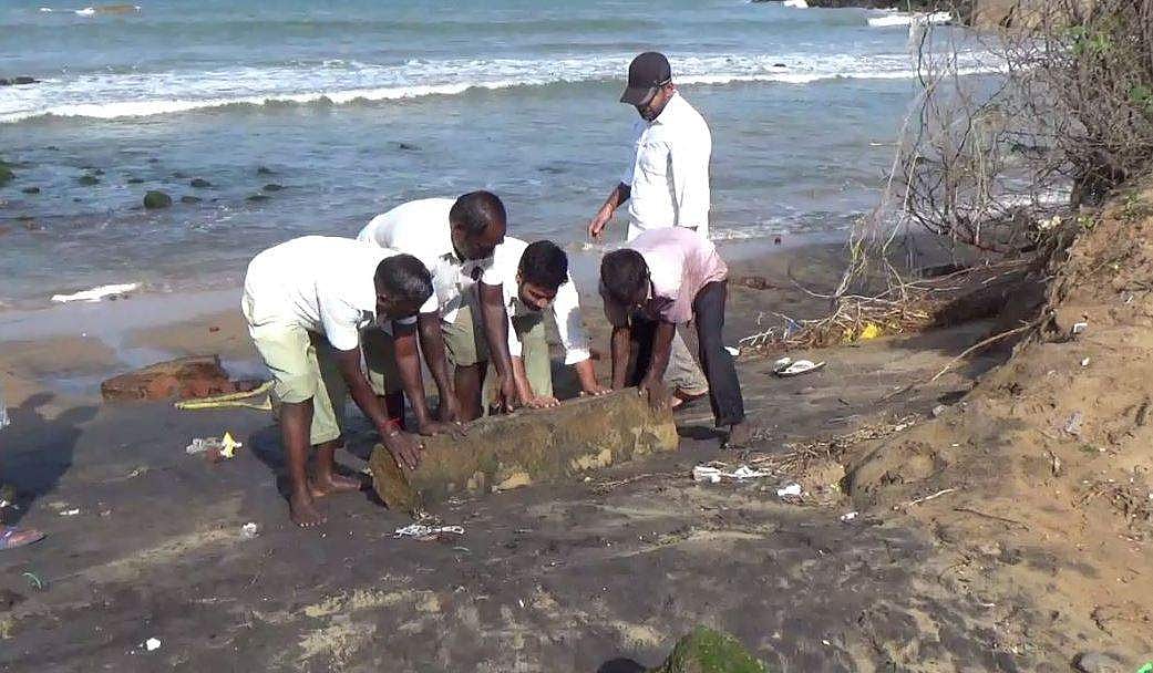 அப்போது பழங்கால கோயில்களின் டெரகோட்டா வகையை சேர்ந்த 70 செங்கற்கள், 8 தூண்கள், கோயில் உச்சியில் அமைக்கப்படும் கருங்கல் ஸ்தூபிகள் என கடல் அரிப்பின்போது பூமிக்கடியில் இருந்து வெளிவந்துள்ளன. மணல் திட்டாக காட்சி அளித்த அப்பகுதி முழுவதும் இப்போது கோயில் கட்டுமானங்களை சேர்ந்த பழங்கால டெரகோட்டா வகையை சேர்ந்த சதுர வடிவு செங்கற்களாகவும் மற்றும் கருங்கற்களாவும் காட்சி அளிக்கிறது.