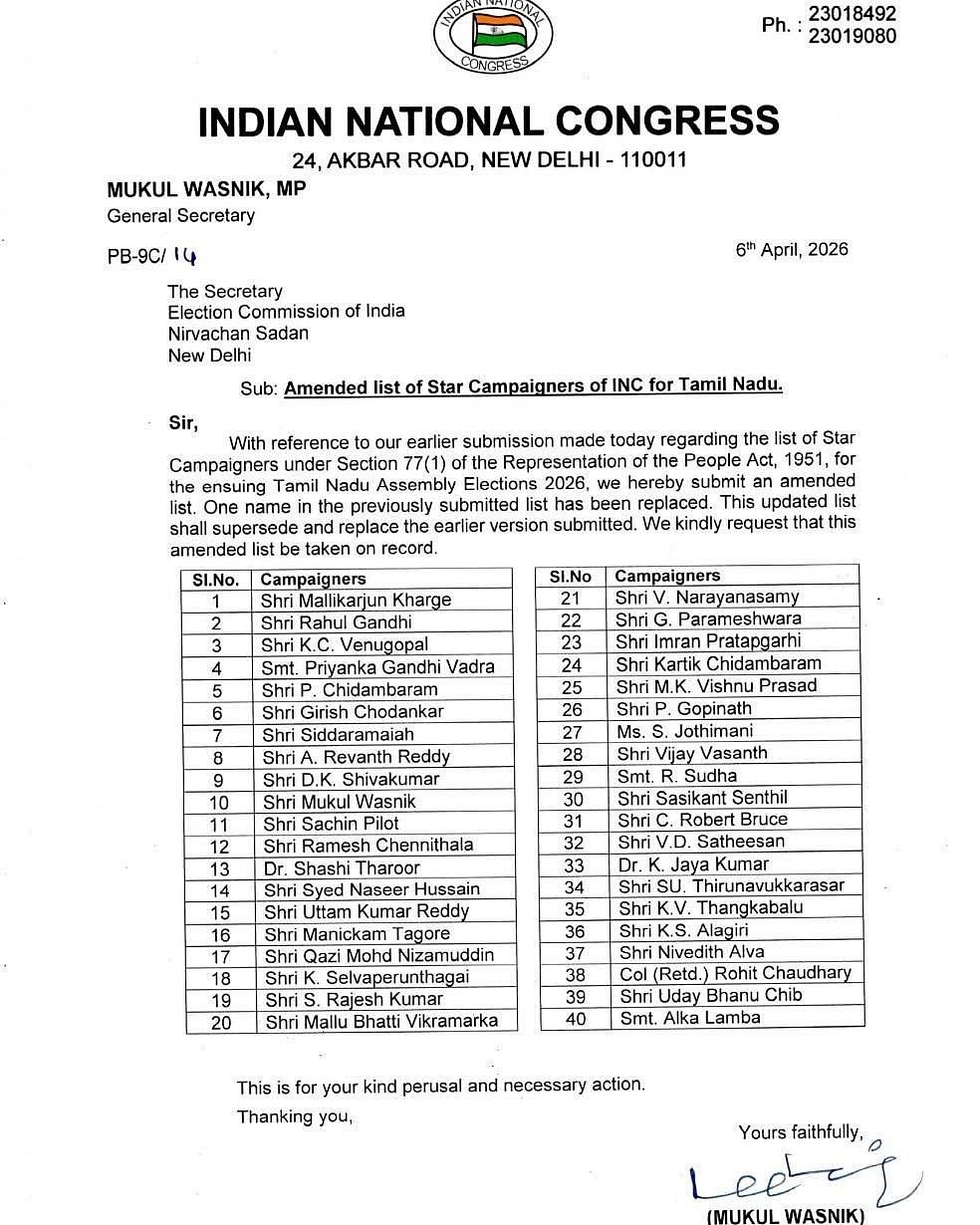 மேலும், தமிழக காங்கிரஸ் தலைவர் செல்வப்பெருந்தகை, முன்னாள் தலைவர்கள் கே.எஸ். அழகிரி, திருநாவுக்கரசு, காங்கிரஸ் எம்பிக்கள் மாணிக்கம் தாகூர், ஜோதிமணி, சசிகாந்த் செந்தில் உள்ளிட்டோரின் பெயரும் இடம்பெற்றுள்ளன.