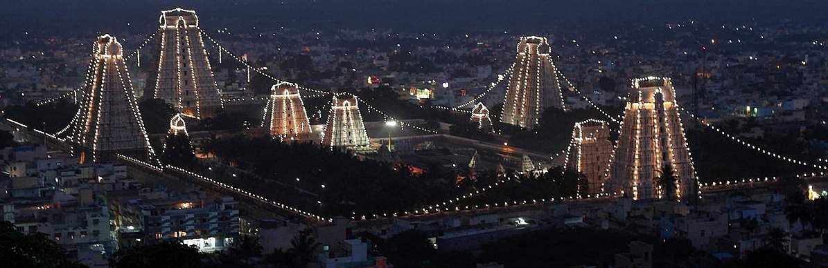 மின் விளக்கு அலங்காரத்தில் ஜொலிக்கும் திருவண்ணாமலை ஸ்ரீஅருணாசலேஸ்வரர் கோயில் கோபுரங்கள்