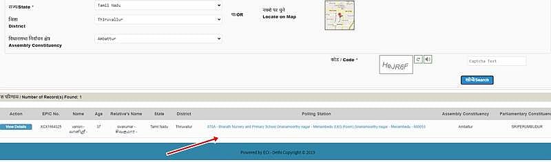 இந்த இணையப் பக்கத்தில் உங்கள் தகவல்களை பதிவு செய்தால்.. கீழே காட்டப்பட்டிருப்பது போல உங்களது வாக்குச்சாவடியின் முழு முகவரியும் தெரிய வரும்.