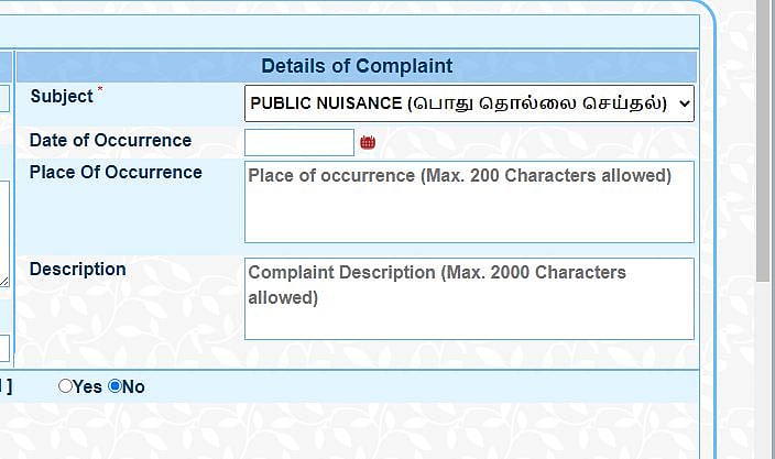 மேலும், புகார் தொடர்பான புகைப்படமோ விடியோவோ, எதுவாயினும் பதிவேற்றி (Choose File) உள்ளிடலாம். இதனைத் தொடர்ந்து, இறுதியில் உள்ள எண்ணையும் உள்ளிட்டு, கீழுள்ள பதிவிடுக-வை (Register) அழுத்துவதன் மூலம் தங்கள் புகாரை பதிவு செய்து விடலாம்.