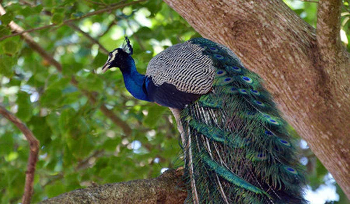 தேசியப் பறவையான மயில்களை பார்ப்பது அரிதாகிவிட்ட சூழலில், தோகை விரித்தாடும் மயில்.