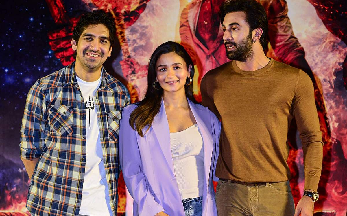 தங்களின் வரவிருக்கும் திரைப்படமான 'பிரம்மாஸ்திரா: முதல் பாகம் - சிவா' படத்தின் செய்தியாளர் சந்திப்பில் கலந்து கொண்ட பாலிவுட் நடிகர் ரன்பீர் கபூர், அலியா பட் மற்றும் இயக்குநர் அயன் முகர்ஜி.