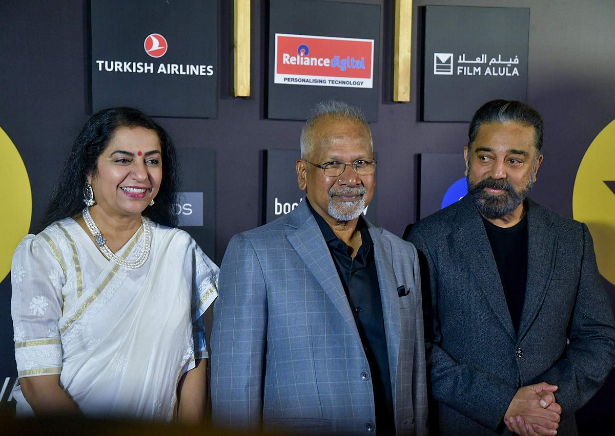 ஜியோ மும்பை அகாதெமி ஆஃப் மூவிங் இமேஜ் திரைப்பட விழாவில் கலந்து கொள்வதற்கு முன்பு இயக்குநர் மணிரத்னம் அவரது மனைவி சுஹாசினி மணிரத்னம் மற்றும் நடிகர் கமல்ஹாசன் புகைப்படத்திற்கு போஸ் கொடுத்தார்.