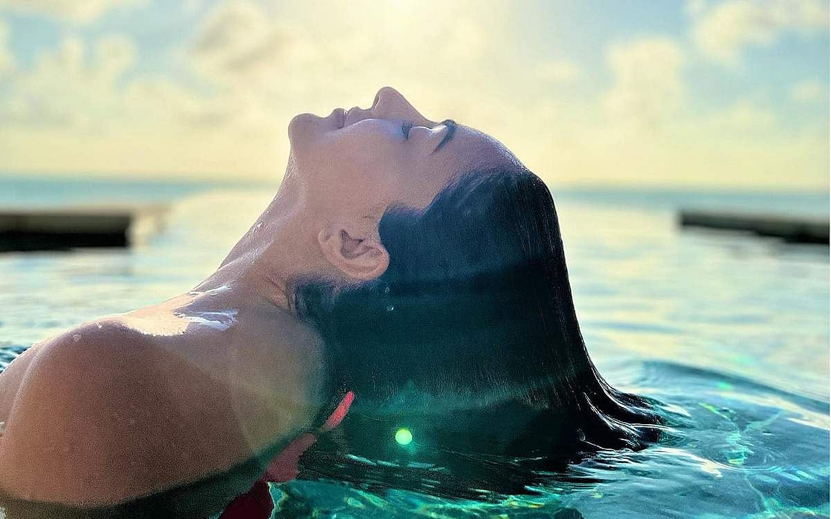 கடற்கரையில் பிகினி உடையணிந்து குளித்த படி போஸ் கொடுத்து வெளியிட்டுள்ள புகைப்படங்கள் தற்போது வைரலாகி வருகின்றன.
